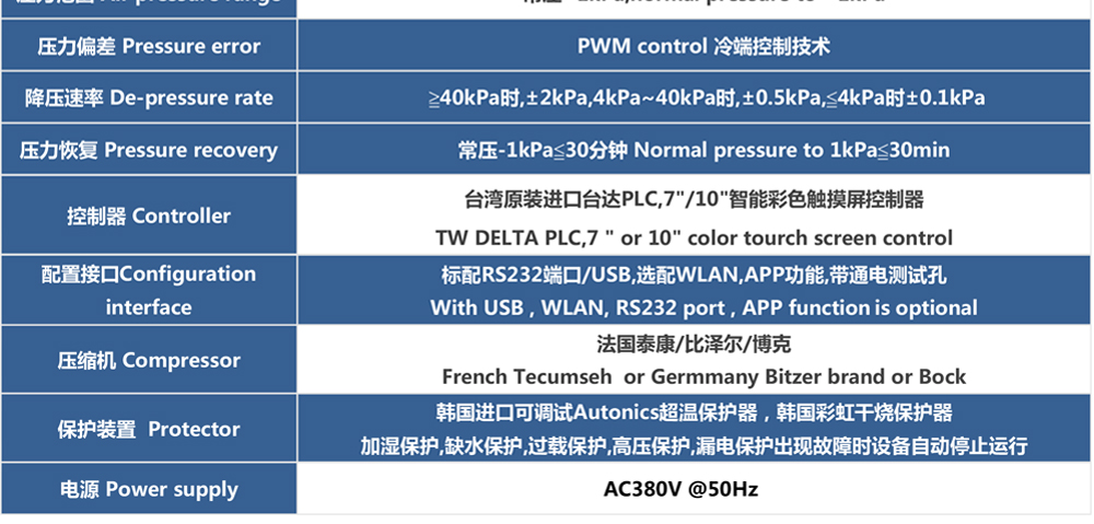 高低溫低氣壓試驗箱也稱為:低氣壓試驗機、低氣壓(高度)試驗箱、高低溫濕熱低氣壓試驗箱,適用于電工、電子產品及其他產品、零部件及材料進行低氣壓試驗的環境試驗箱設備,可滿足電工電子產品及軍用裝備等環境試驗 - 高溫試驗、低溫試驗、溫度變化試驗、低氣壓試驗、溫度高度試驗、低溫/低氣壓綜合試驗、高溫/低氣壓綜合試驗,適用于電工、電子、儀器儀表及其它產品零部件及材料在高低溫交變環境下貯存、運輸、使用時的適應性試驗。