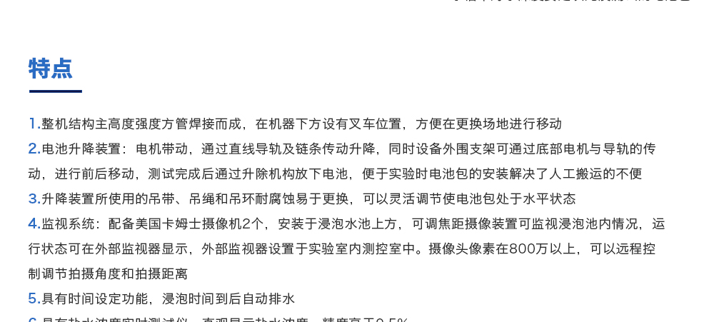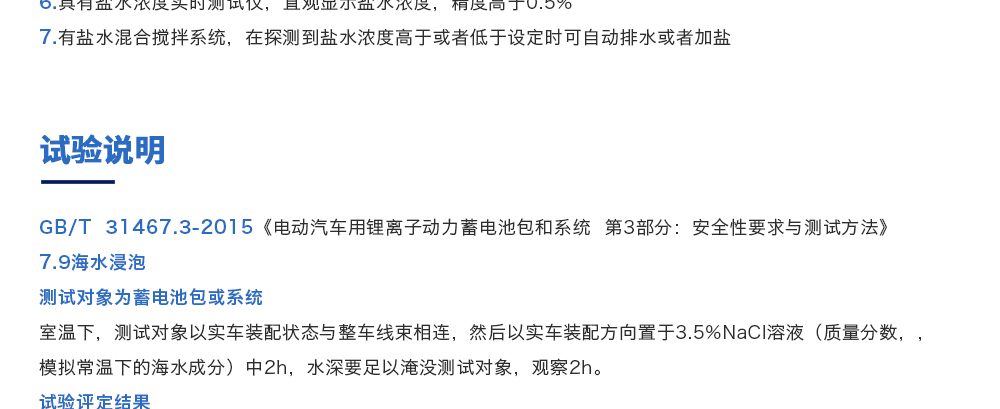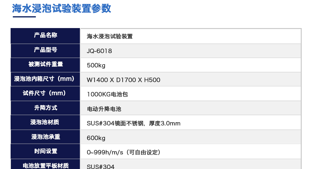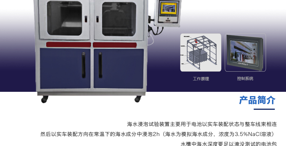 產(chǎn)品型號(hào):JQ-6018 品牌:劍 喬 用途:海水浸泡試驗(yàn)裝置主要用于電池以實(shí)車裝配狀態(tài)與整車線束相連然后以實(shí)車裝配方向在常溫下的海水成分中浸泡2h(海水為模擬海水成分,濃度為3.5%NaCl溶液)水槽中海水深度要足以淹咨詢熱線:13829135130