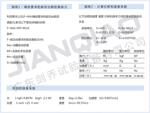 振動試驗作為航空、航天、國防、汽車、電子等行業(yè)進(jìn)行產(chǎn)品結(jié)構(gòu)的耐振性、可靠性和完好性測試的重要工具,大多數(shù)企業(yè)在選擇振動試驗臺時,搞不明白推力、加速度與試驗品重量之間的關(guān)系,這也導(dǎo)致選型困難,買錯設(shè)備的情況發(fā)生,下面由廣東劍喬小編給大家普及一下: